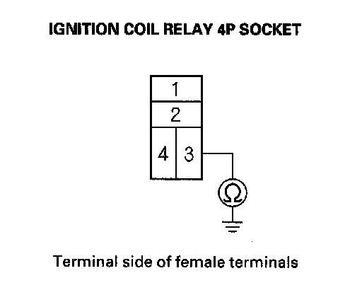 7. Check for continuity between ignition coil relay 4P socket terminal No. 3 and body ground.