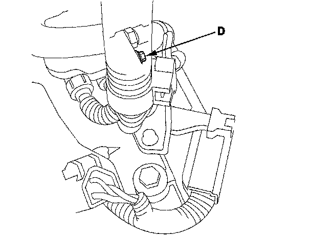 13. Connect the oil pressure gauge to the 2nd clutch pressure inspection hole (D). Then temporarily install the air cleaner housing and intake air duct.