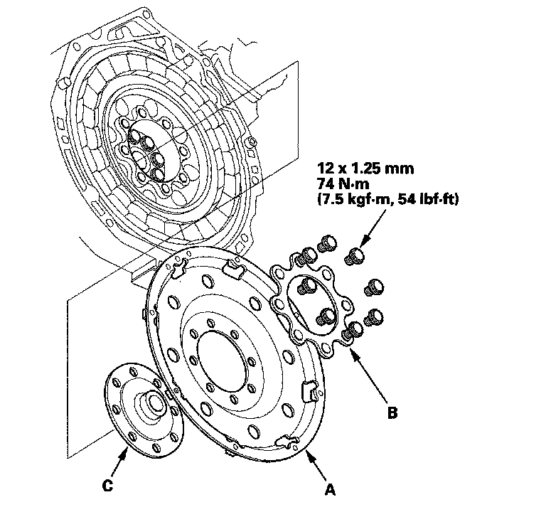 Install the drive plate and washer, and tighten the bolts in a crisscross pattern in two or more steps.