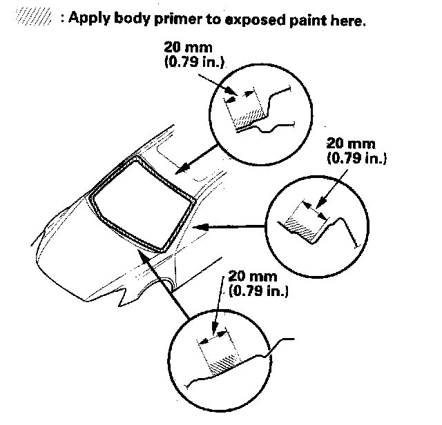 - Never touch the primed surfaces with your hands. If you do, the adhesive may not bond to the windshield properly, causing a leak after the windshield is installed.