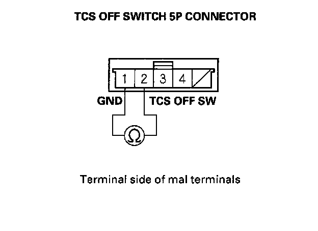 3. Check for continuity between the TCS OFF switch connector terminal No. 1 and No. 2. There should be continuity when the switch is pushed.