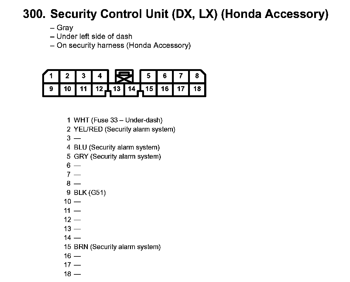 300. Security Control Unit (DX, LX) (Honda Accessory):