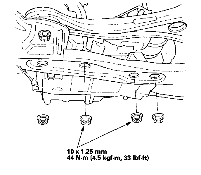 NOTE: Reinstall the mounting bolts/support nuts in the sequence given in following steps. Failure to follow this sequence may cause excessive noise and vibration, and reduce engine mount life.