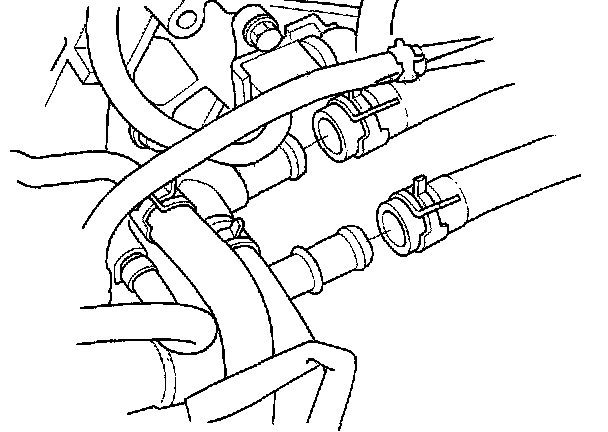 54. Install the brake booster vacuum hose (A), evaporative emission (EVAP) canister hose (B), and vacuum hose (C).