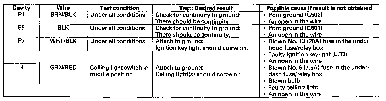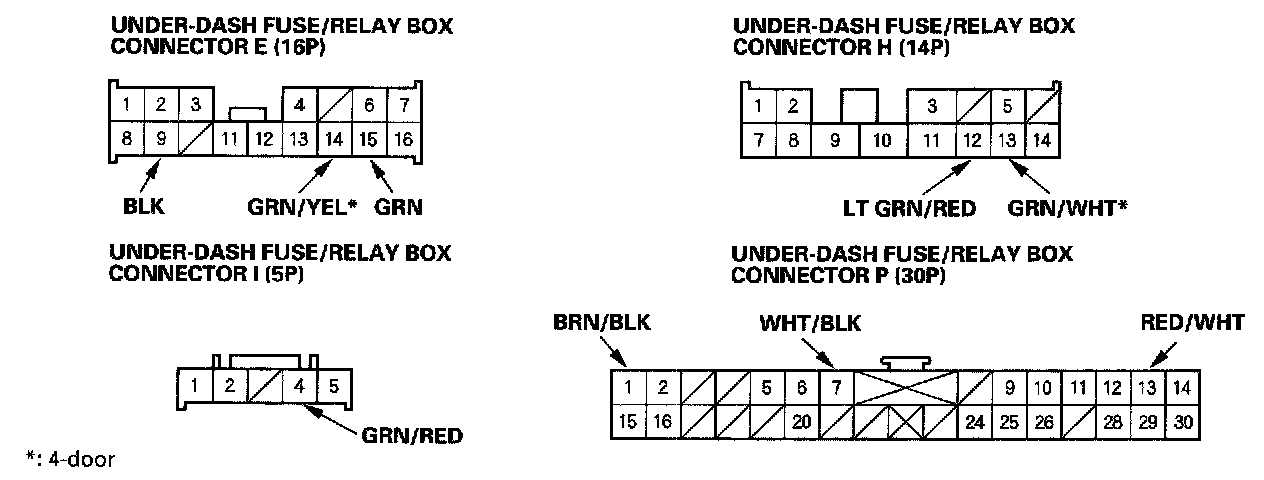 7. Turn the ignition switch to ON (II) to keep the system awake and make these in put tests at the appropriate connectors on the under-dash fuse/relay box.