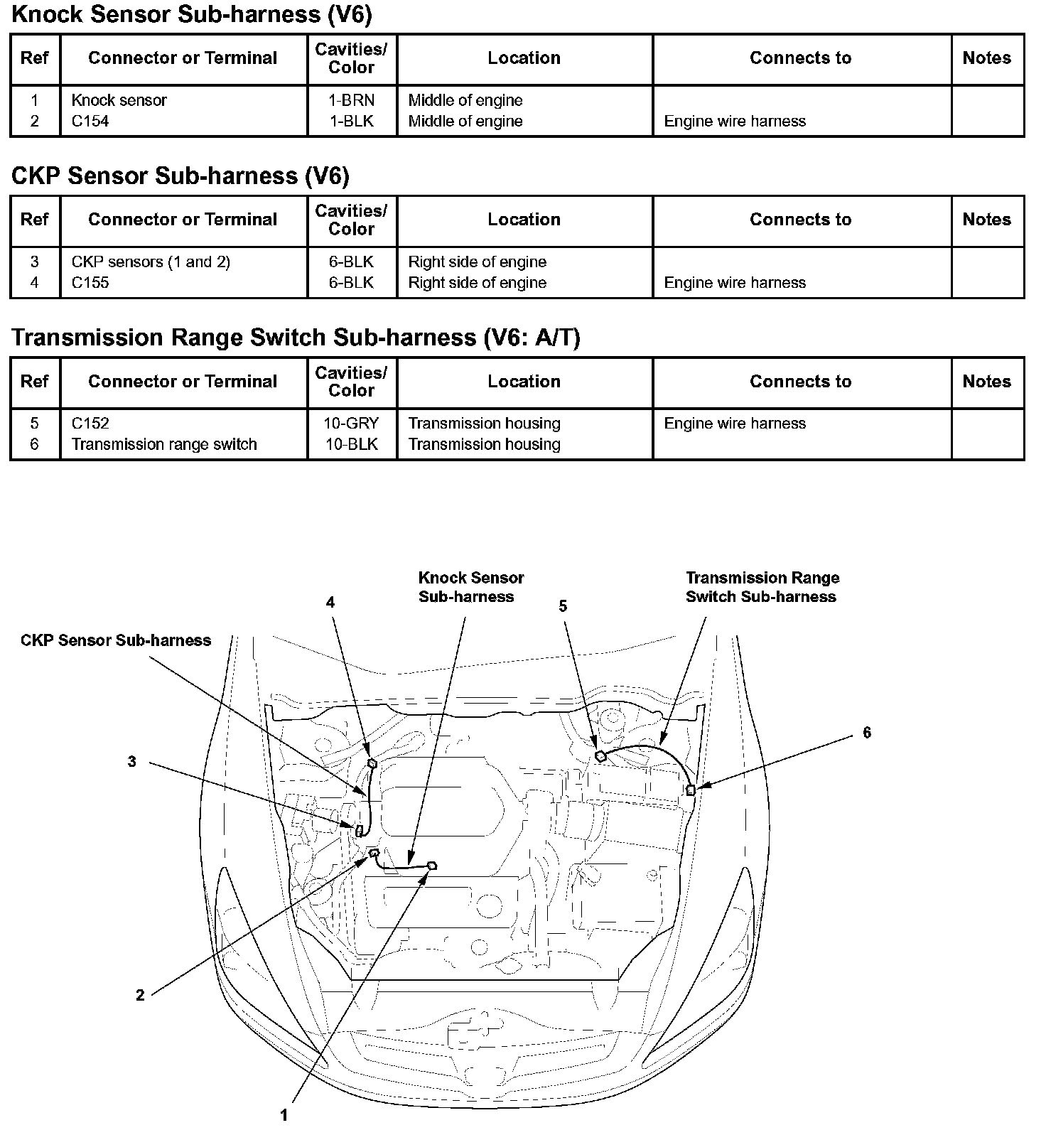 Knock Sensor Sub-harness/ CKP Sensor Sub-harness/ Transmission Range Switch Sub-harness (V6: A/T):