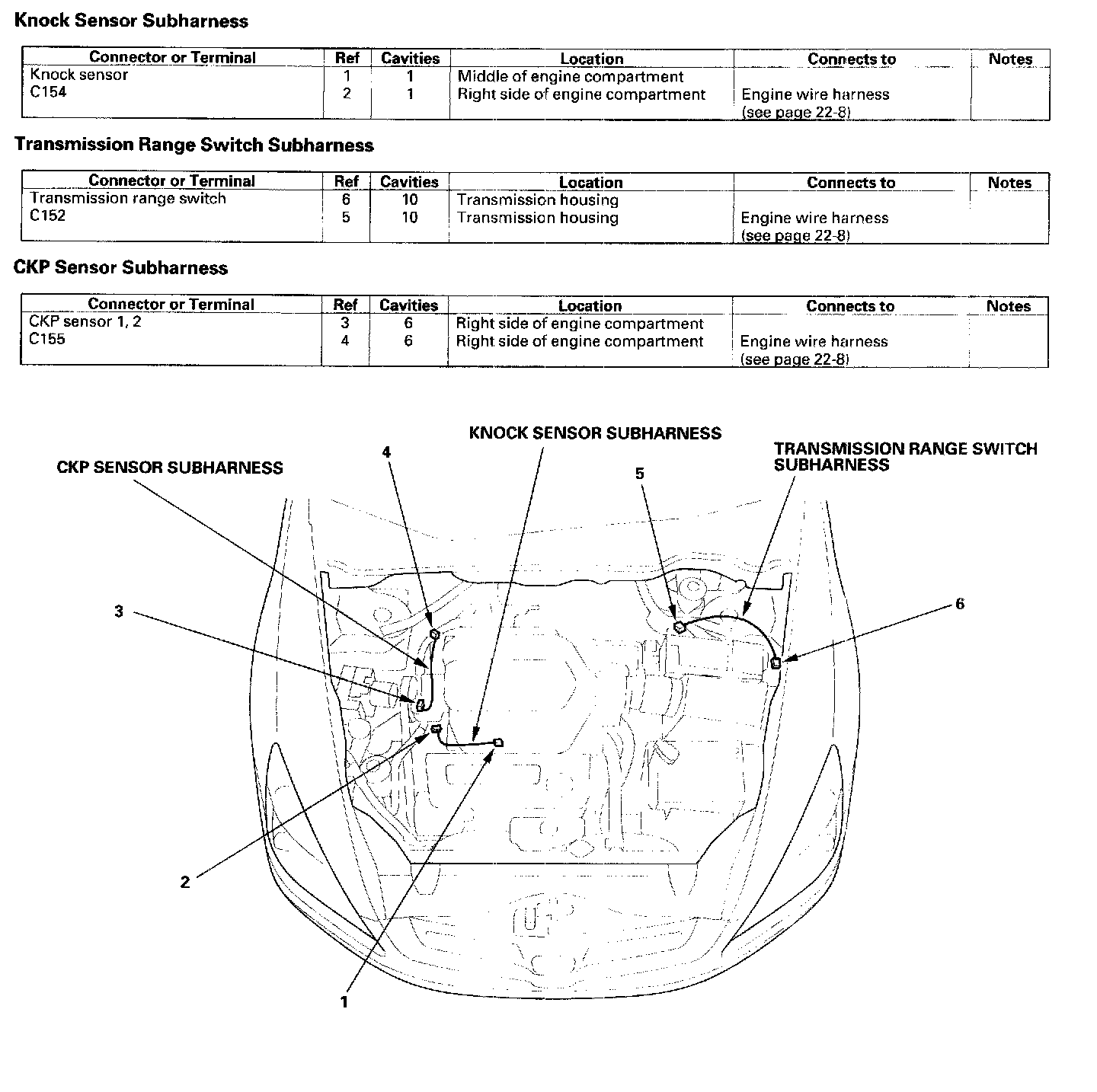 knock Sensor Subharness/Transmission Range Switch Subharness/CKP Sensor Subharness: