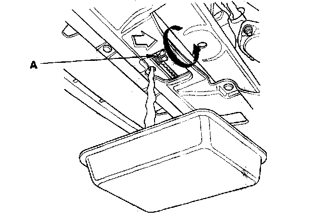 5. When the coolant stops draining, tighten the drain bolt. Remove the rubber hose.