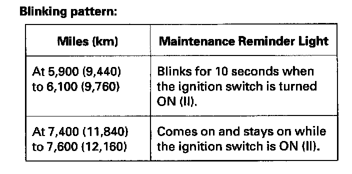 Push and hold the trip/reset button, turn the ignition switch ON (II), and continue to hold the button for more than 10 seconds or until the indicator goes out.
