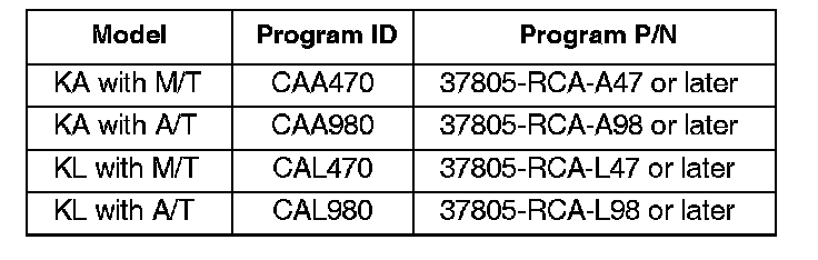 1. Update the PGM-FI software with the HDS. Refer to Service Bulletin 01-023, Updating Control Units/ Modules.