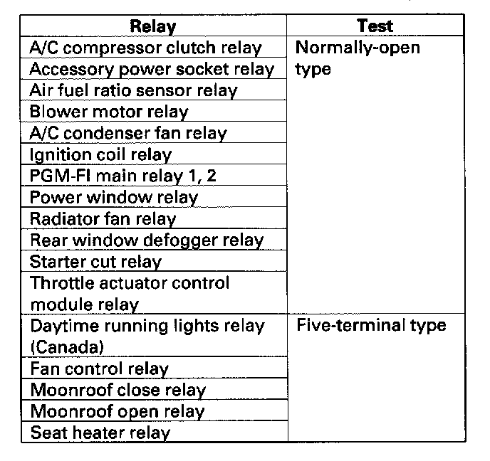 Main Relay (Computer/Fuel System): Testing and Inspection