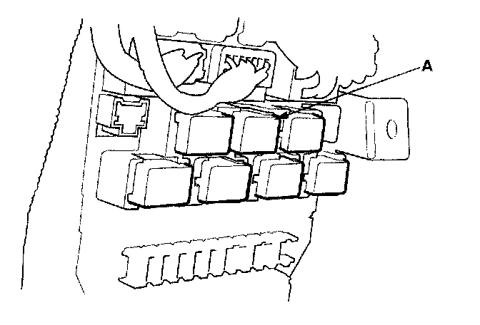 26. Remove the left kick panel, then remove the PGM-FI main relay 1 (FI MAIN) (A) from the under-hood fuse/relay box.