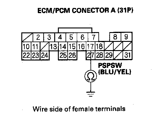 11. Check for continuity between PSP switch 2P connector terminal No.1 and body ground.