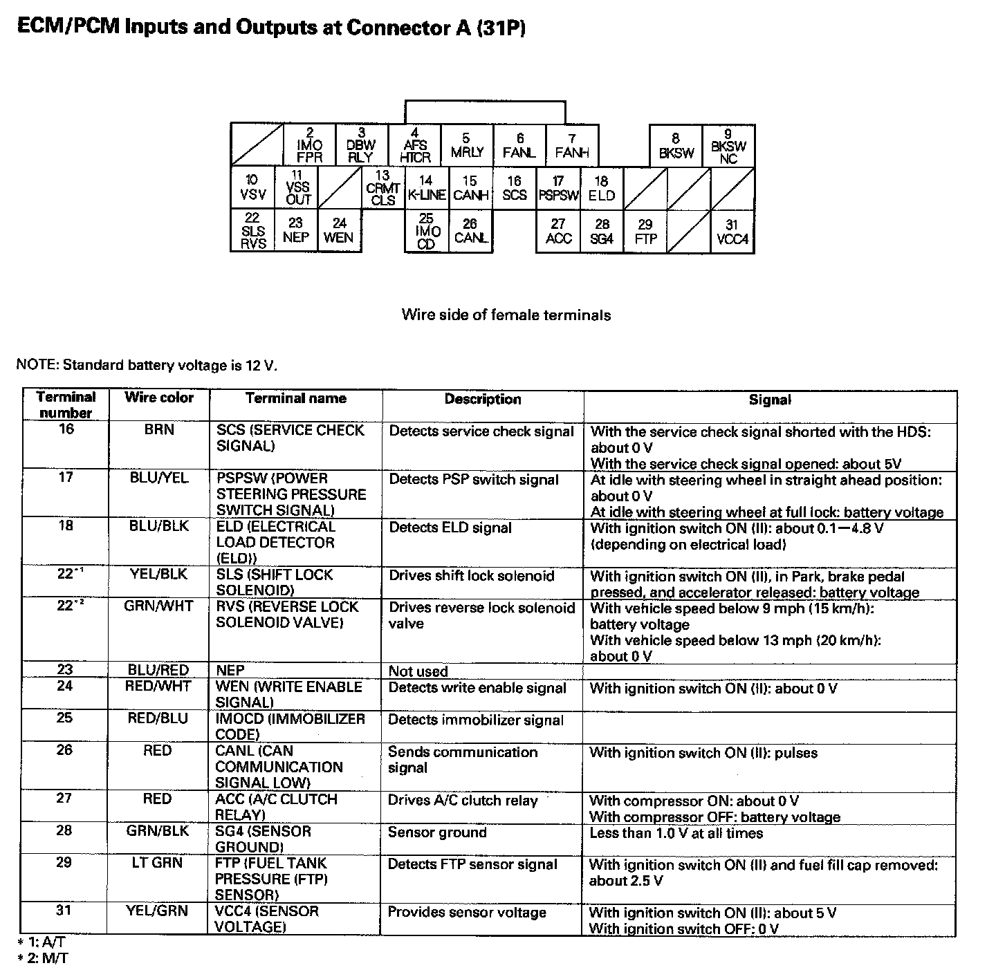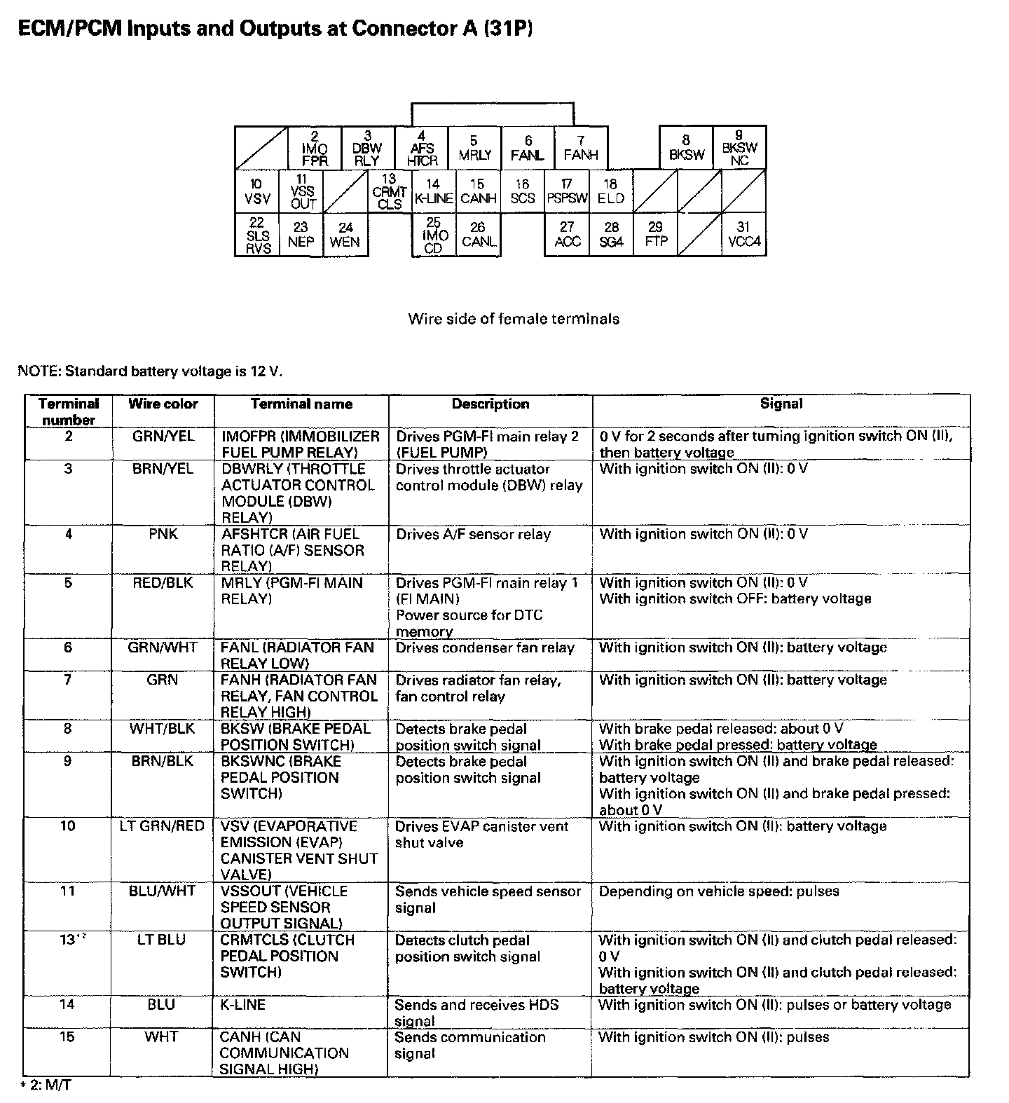 ECM/PCM Inputs And Outputs At Connector A (31P) Part 1:
