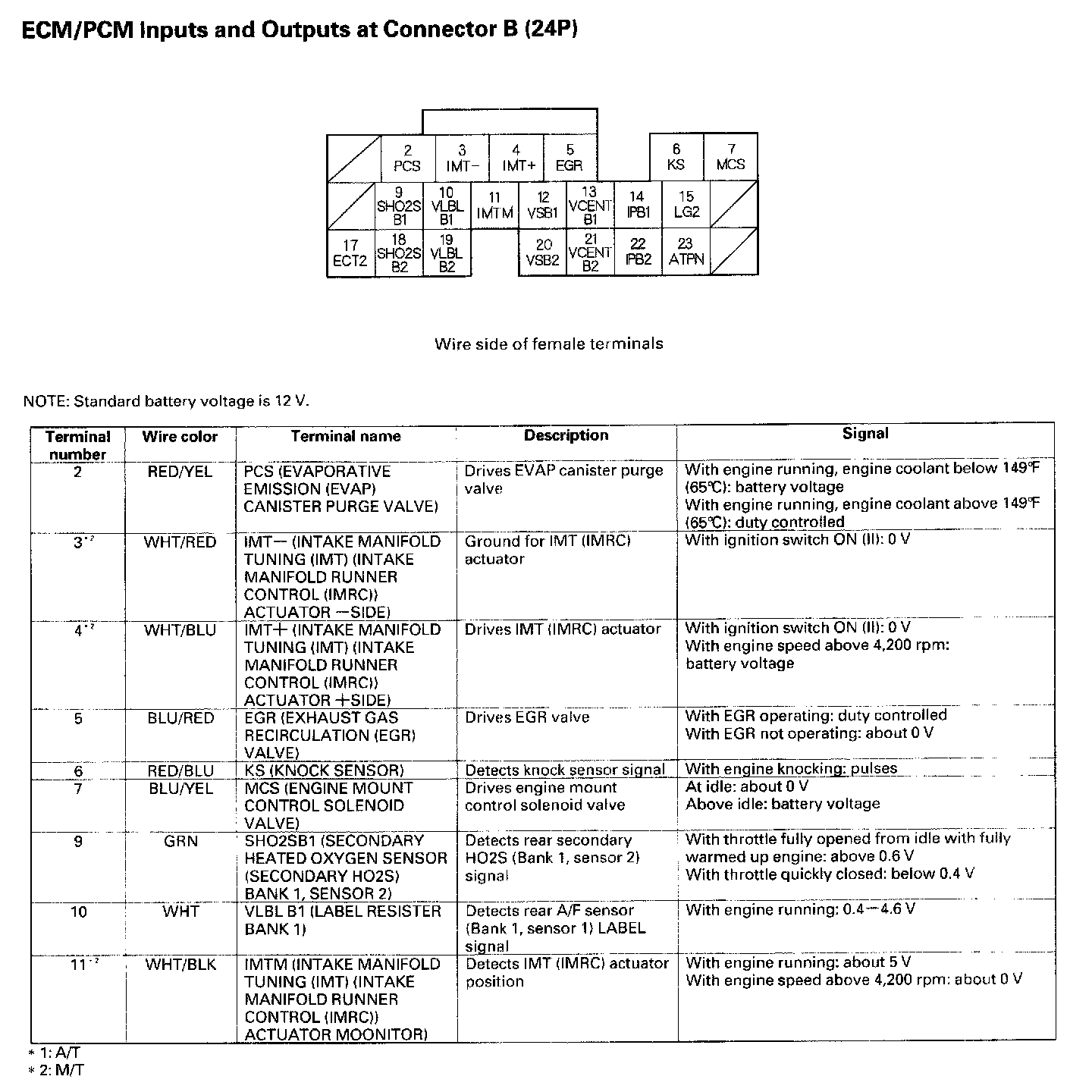 ECM/PCM Inputs And Outputs At Connector B (24P) Part 1: