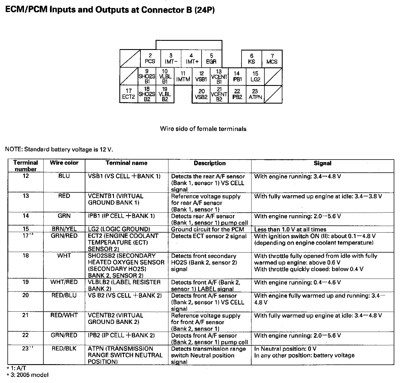 ECM/PCM Inputs And Outputs At Connector B (24P) Part 2: