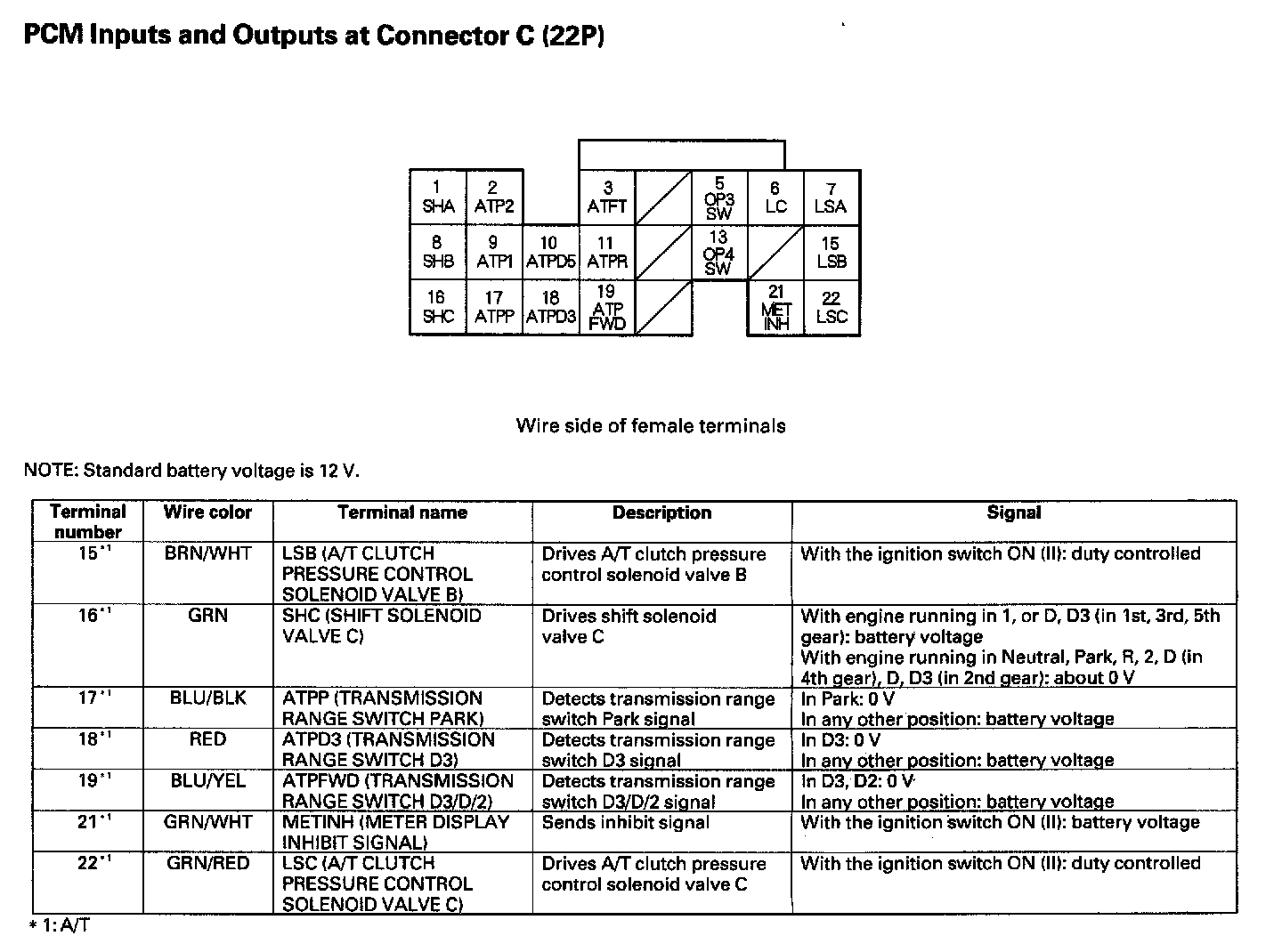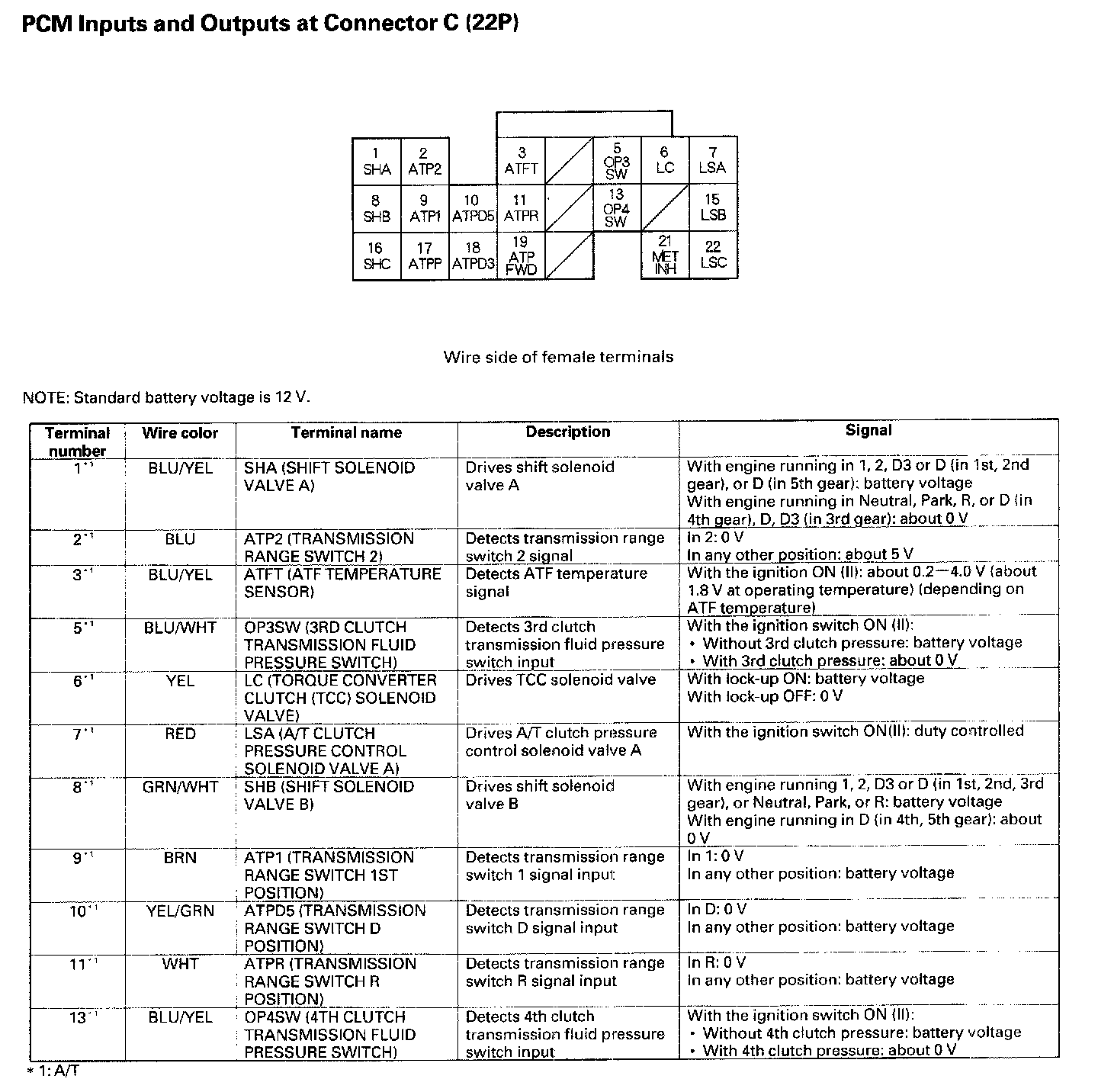 PCM Inputs And Outputs At Connector C (22P) Part 1: