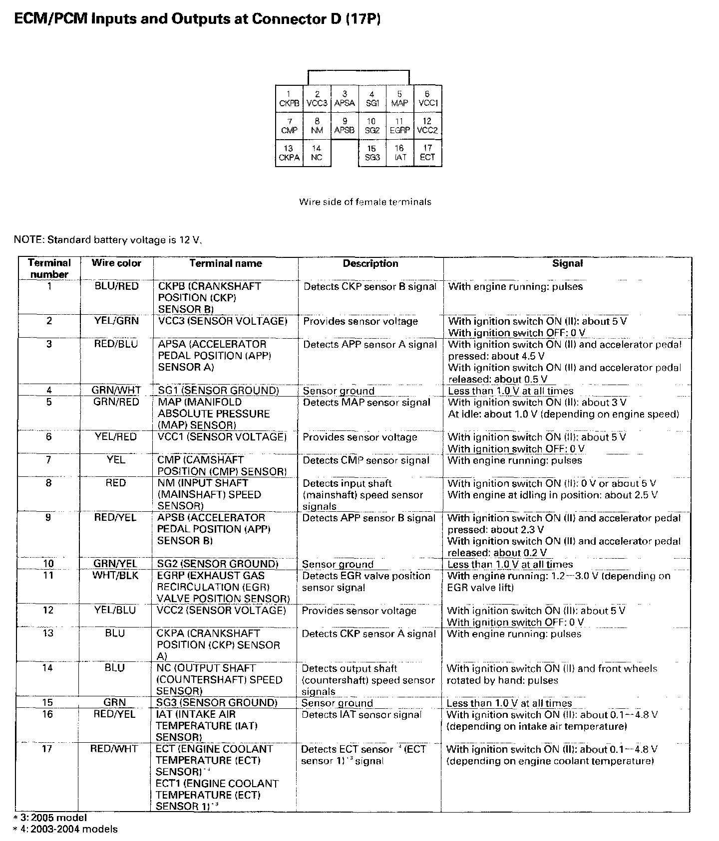 ECM/PCM Inputs And Outputs At Connector D (17P):