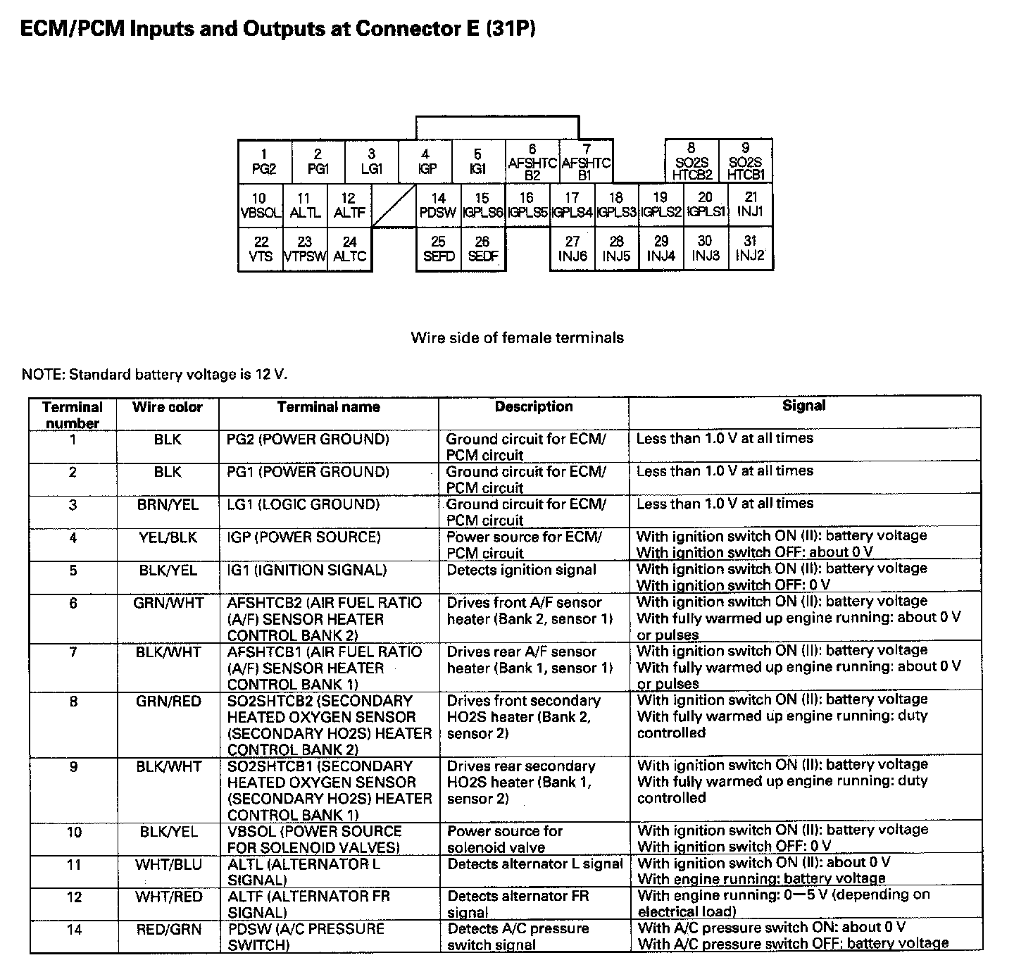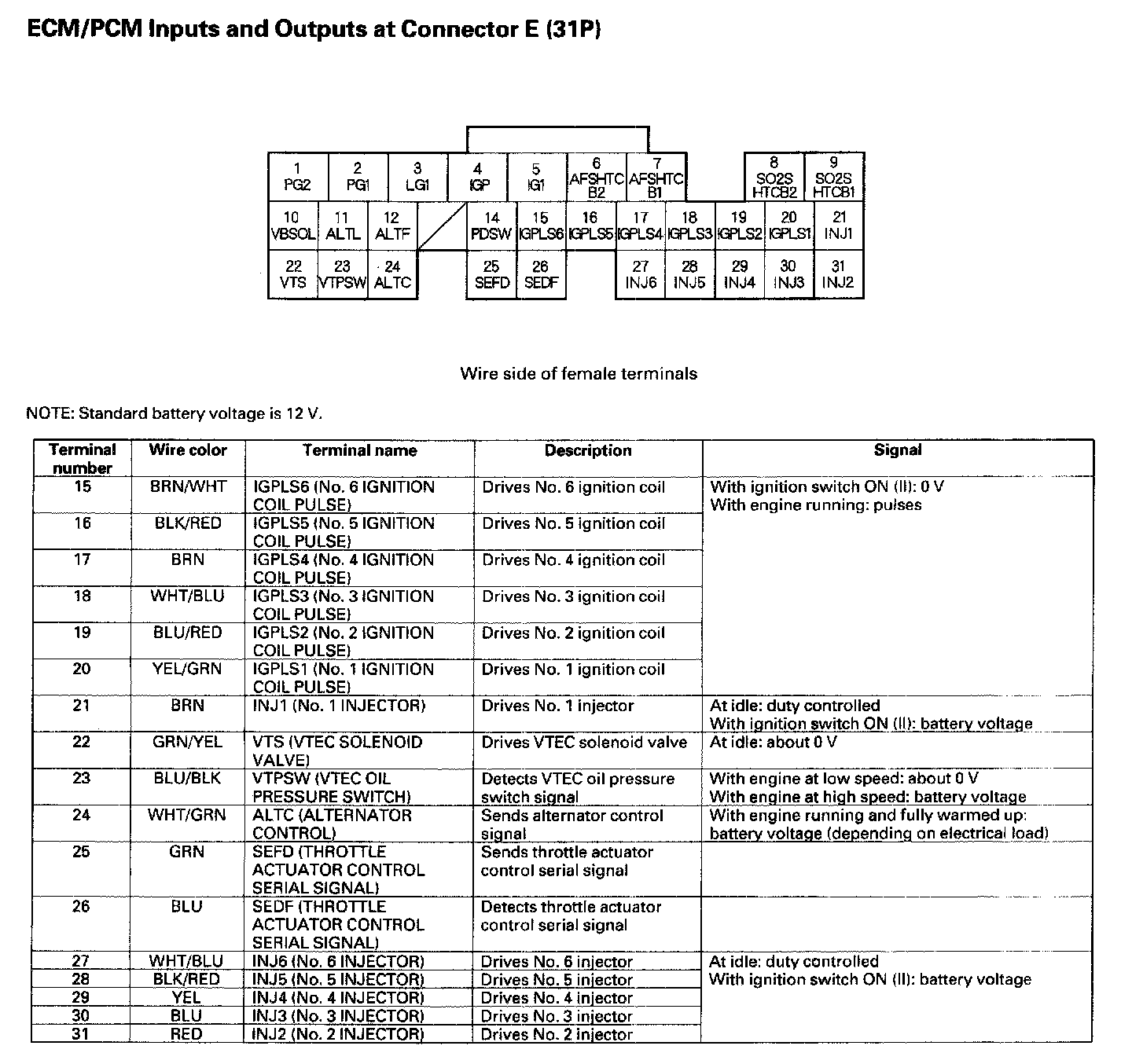 ECM/PCM Inputs And Outputs At Connector E (31P) Part 1: