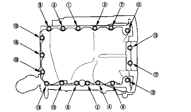 Tighten the bolts in two or three steps. In the final step, tighten all bolts, in sequence, to 12 Nm (1.2 kgf-m, 8.7 ft. lbs.).