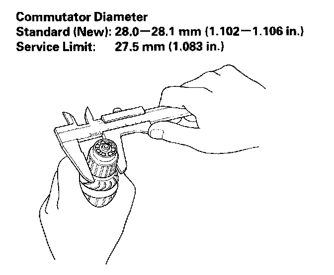 5. Check the commutator diameter If the diameter is below the service limit, replace the armature.