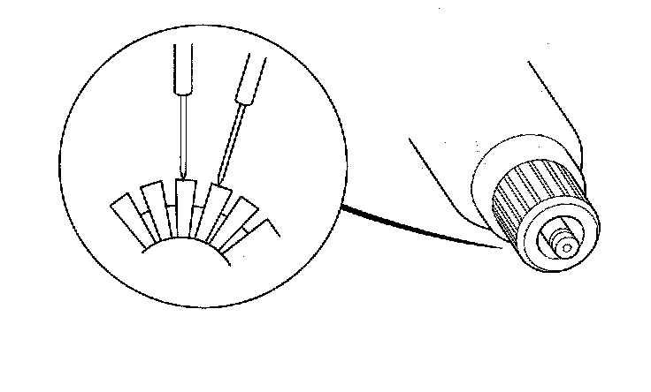 8. Check for continuity between the segments of the commutator. If there is an open circuit between any segments, replace the armature.