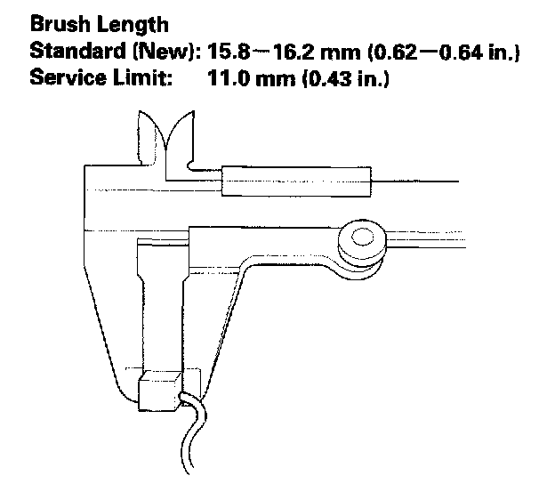 11. Measure the brush length. If it is not within the service limit, replace the brush holder assembly.