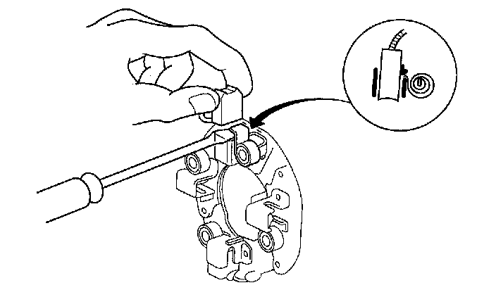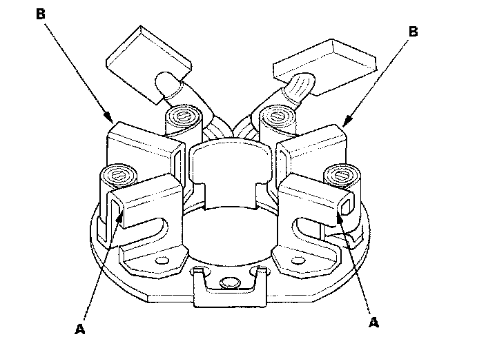12. Check for continuity between the (+) brush holder (A) and (-) brush holder (B). If there is continuity, replace the brush holder assembly.