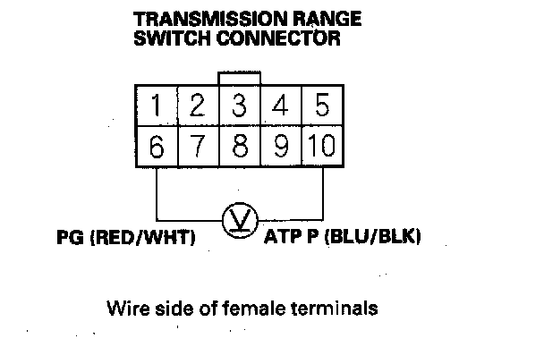 23. Measure the voltage between transmission range switch connector terminals No. 6 and No. 10.
