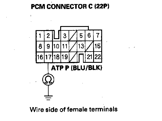 19. Check for continuity between PCM connector terminal A8 and body ground.