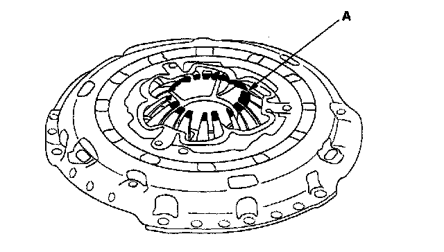 6. Inspect the fingers of the diaphragm spring (A) for wear at the release bearing contact area.