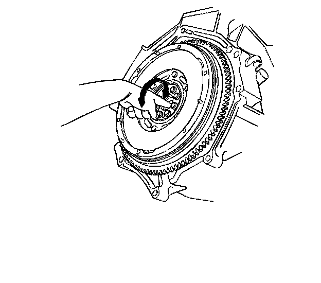 4. Turn the inner race of the pilot bearing with your finger. The pilot bearing should turn smoothly and quietly. Check that the pilot bearing outer race fits tightly in the flywheel. If the race does not turn smoothly, quietly, or fit tight in the crankshaft, replace the pilot bearing.