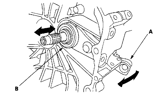 8. Move the release fork (A) right and left to make sure that it fits properly against the release bearing (B) and that the release bearing slides smoothly. Wipe off overflowed grease.