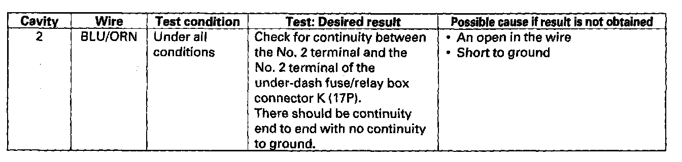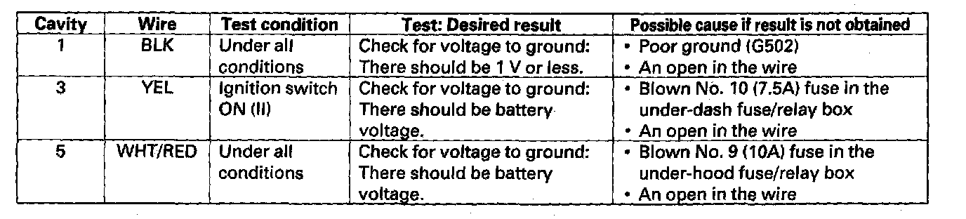 6. Reconnect the 5P connector and make these input tests at the connector.