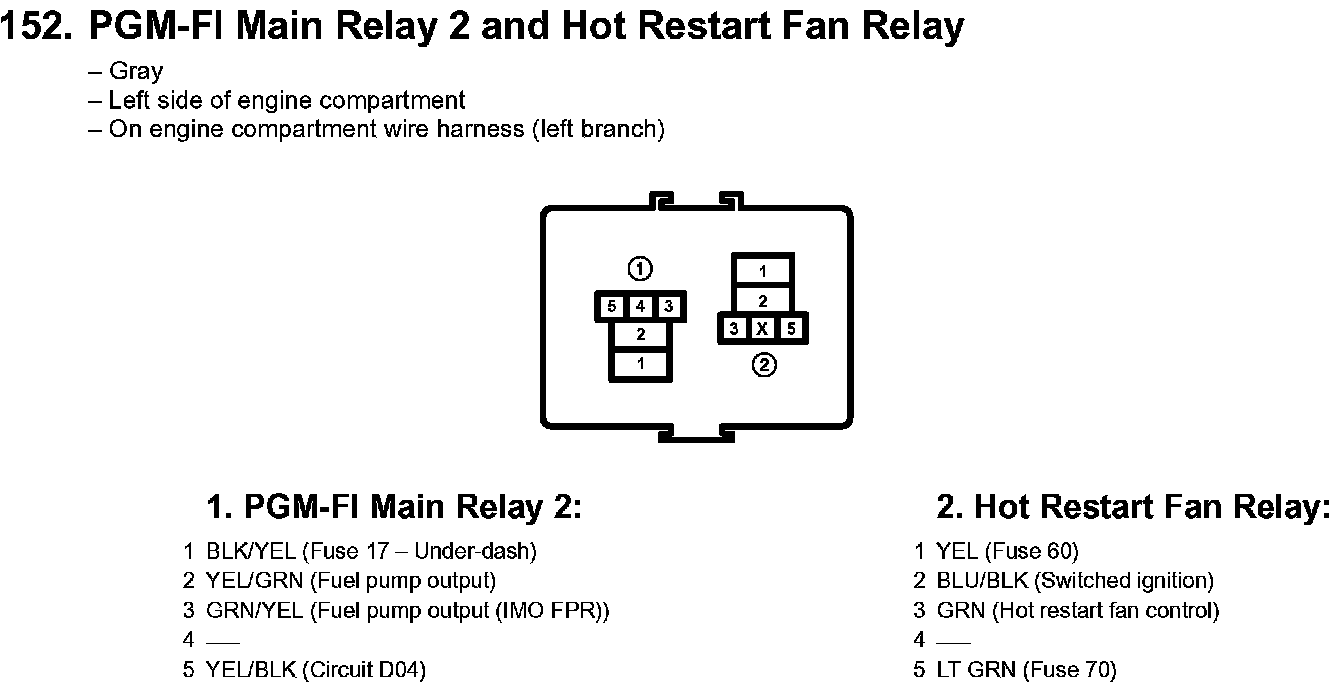 152. PGM-FI Main Relay 2 And Hot Restart Fan Relay: