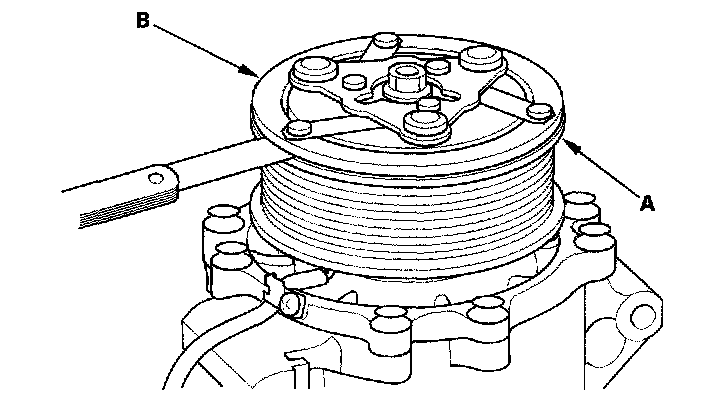Clearance between the rotor pulley (A) and the armature plate (B).