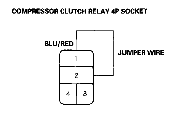 5. Connect the No.1 and No.2 terminals of the compressor clutch relay 4P socket with a jumper wire.