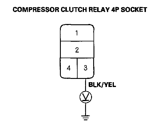 4. Measure the voltage between the No.2 terminal of the compressor clutch relay 4P socket and body ground.