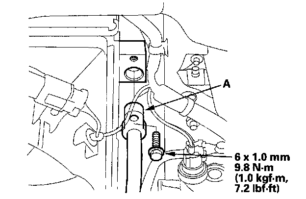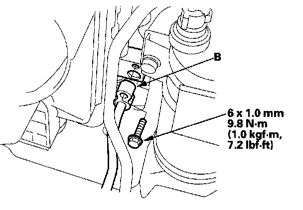 3. Remove the bolts, then disconnect the discharge line (A) and the condenser line (B) from the condenser. Plug or cap the lines immediately after disconnecting them to avoid moisture and dust contamination.