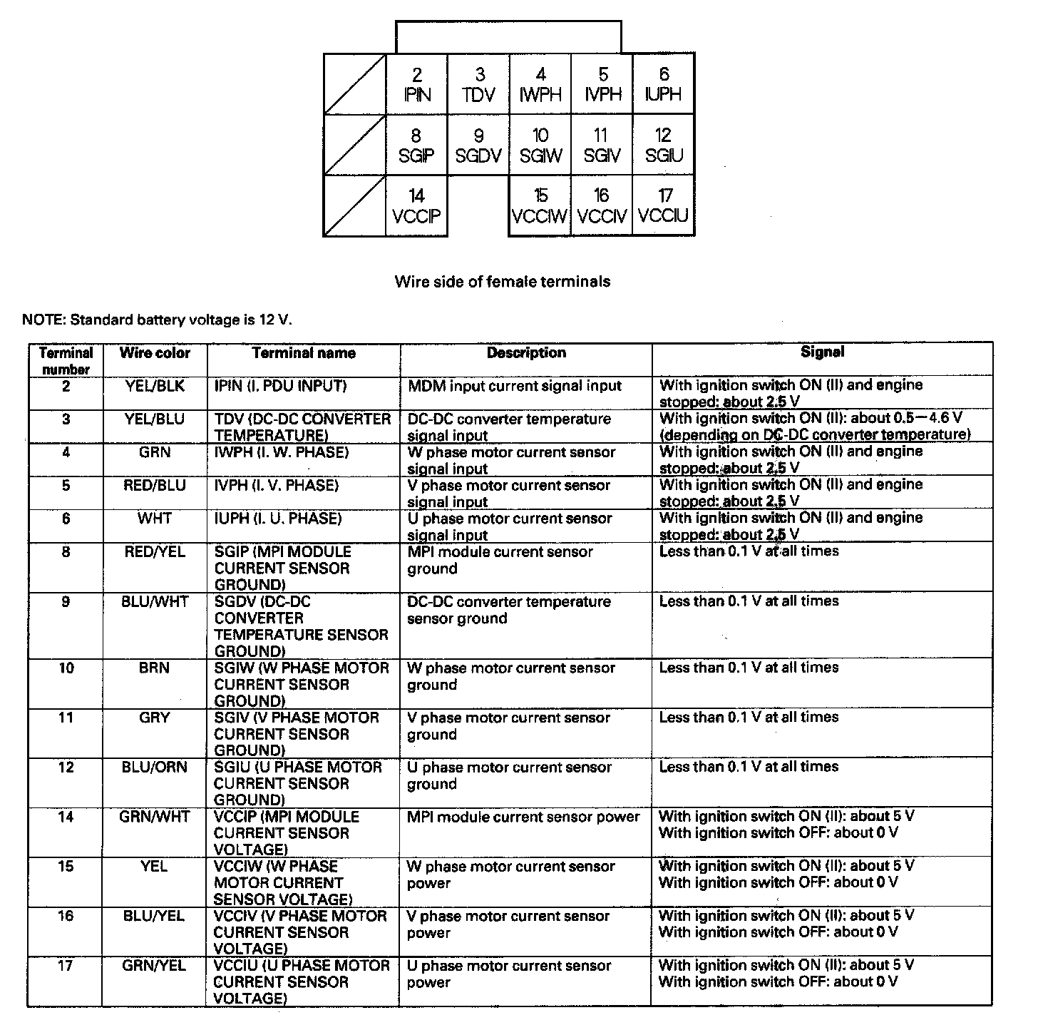 MCM Inputs and Outputs at Connector C (17P)