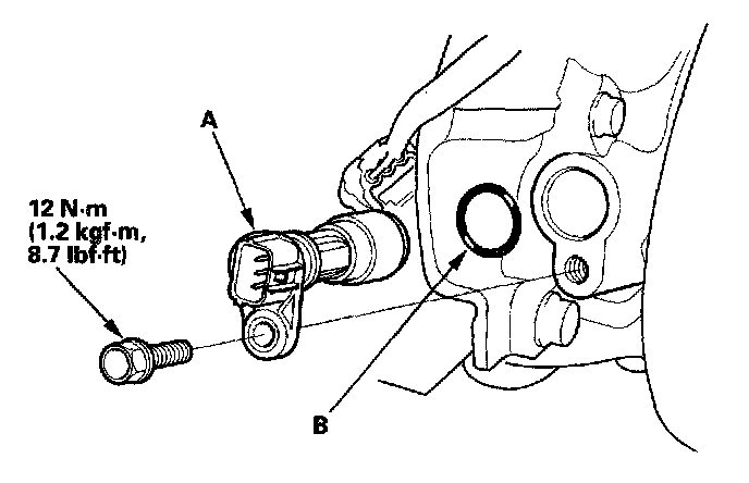 Install the sensor in the reverse order of removal with a new O-ring (B).
