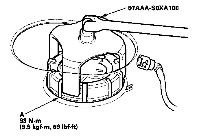 7. Remove the fuel pump/fuel gauge sending unit (A).