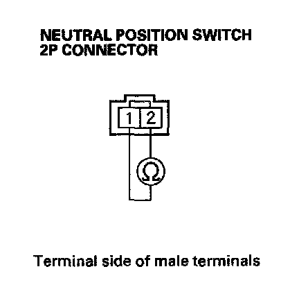 18. Check for continuity between neutral position switch 2P connector terminals No.1 and No.2 with the transmission in 1st gear.