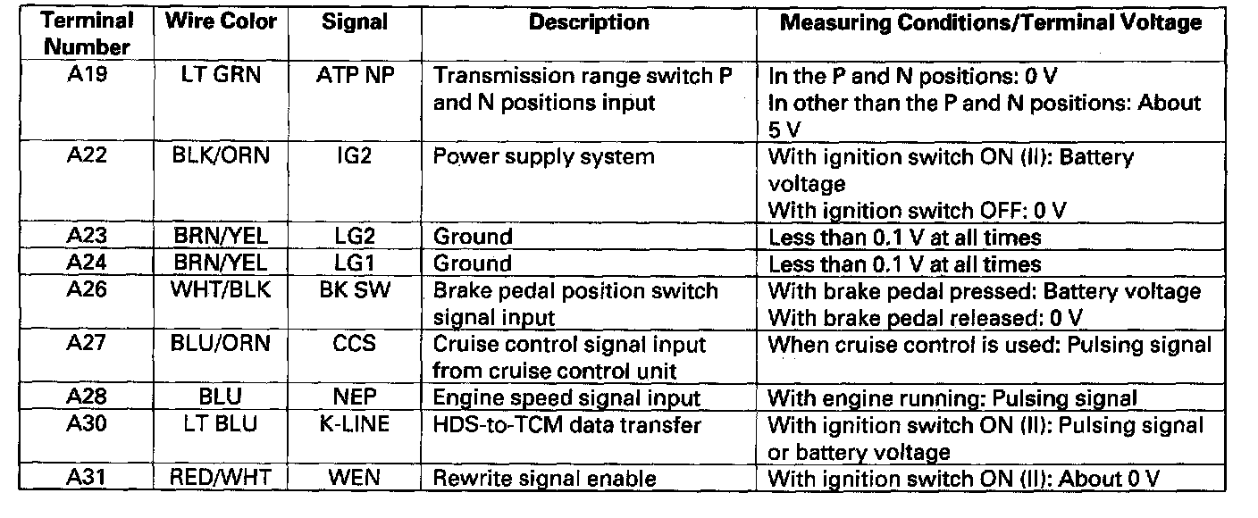 TCM Inputs and OutputsTCM CONNECTOR A (31P), Part 1 Of 2: