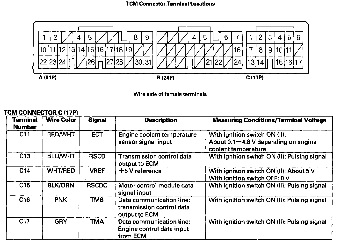 TCM CONNECTOR C (17P) Part 1 Of 2: