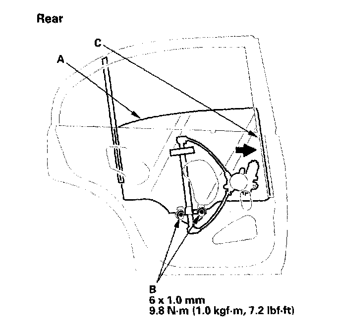 4. Push the glass against the channel (C), then tighten the glass mounting bolts.