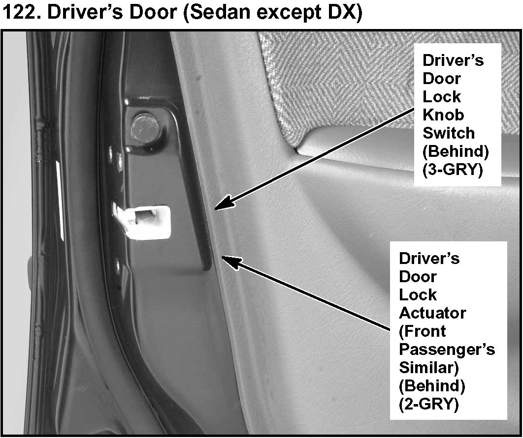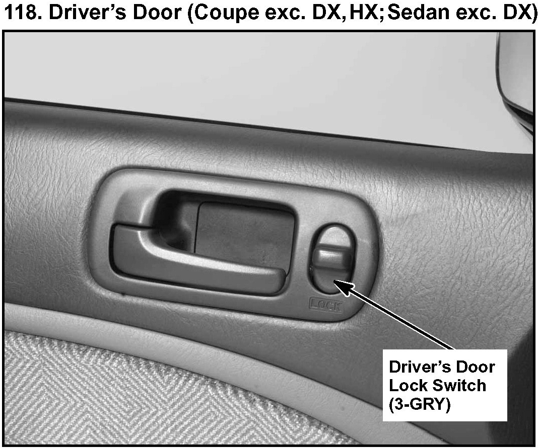 118. Driver's Door (Coupe Exc. DX, HX; Sedan Exc: DX):