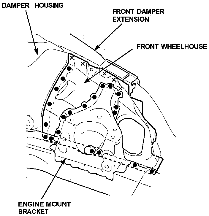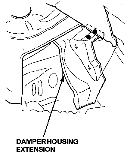 - From the passenger compartment side, plug weld the holes in the dashboard lower, damper housing extension, and front damper extension.