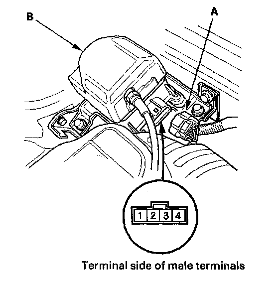 1. Disconnect the 4P connector (A) from the cruise control actuator (B).