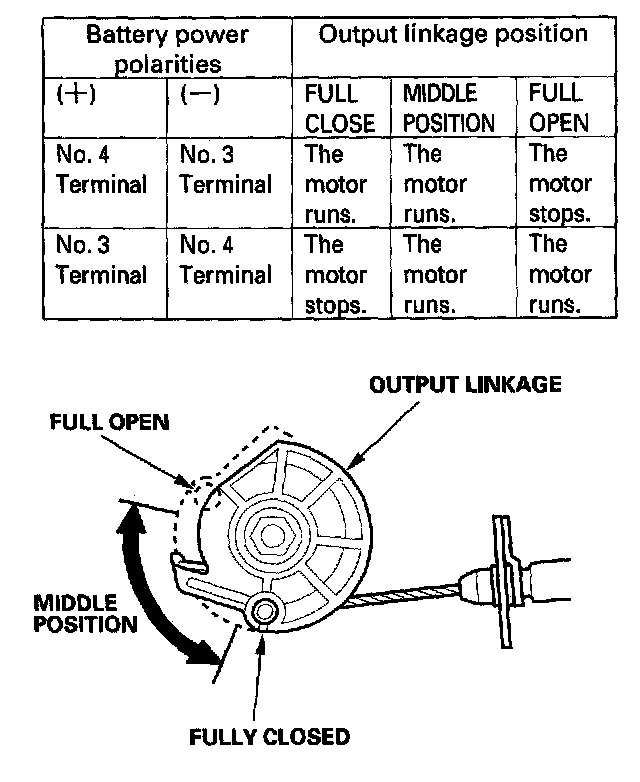 6. Check the operation of the actuator motor in each output linkage position according to the table. You should hear the motor.